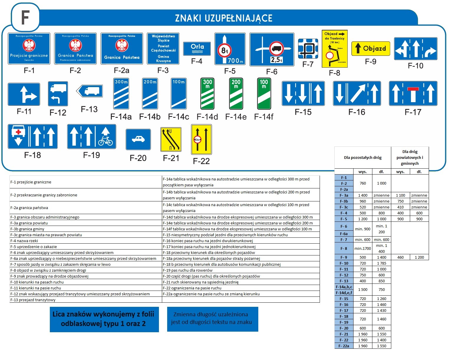 Zmienna długość uzależniona jest od długości tekstu umieszczonego na znaku.