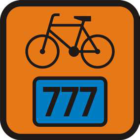 R-4 informacja o szlaku rowerowym z numerem i jego barwnym oznaczeniem