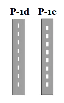 P-1d, P-1e linia pojedyńcza przerywana-prowadząca wąska i szeroka